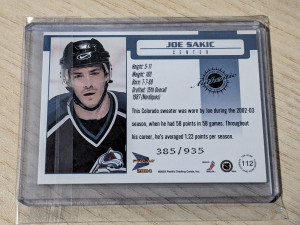 Joe Sakic /935 Prizm authentic game worn jersey 2004