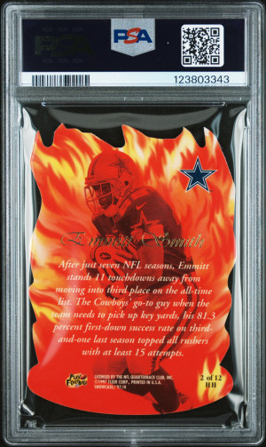 1997 Flair Showcase EMMITT SMITH Rare HOT HANDS DIE-CUT INSERT #2 - GRADED PSA 8 Dallas Cowboys