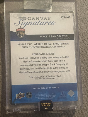 2023-24 UD Clear Cut. Mackie Samoskevich Canvas Rookie Auto