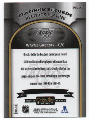 2017-18 O-Pee-Chee Platinum Platinum Records #PR-5 Wayne Gretzky