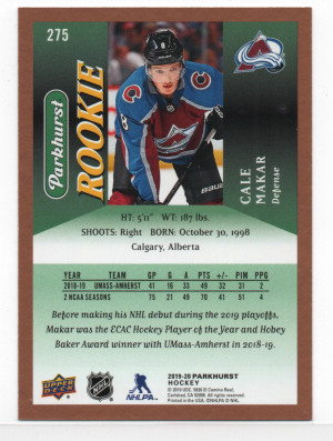 2019-20 Upper Deck Parkhurst ePack Bronze Parallel #275 Cale Makar RC