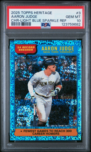 2025 Topps Heritage Aaron Judge Chr-Light Blue Sparkle Ref