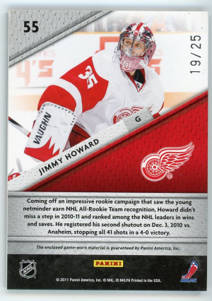 2011-12 Certified #55 Jimmy Howard Fabric of the Game National Die Cut Jersey 19/25