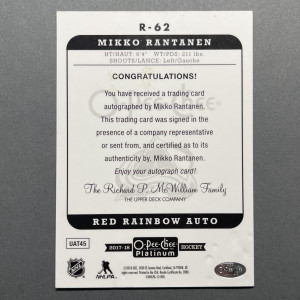 2017-18 OPC PLATINUM MIKKO RANTANEN RED RAINBOW AUTO