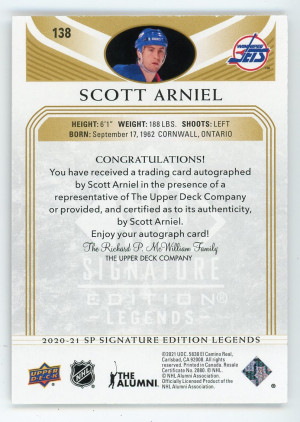2020-21 SP Signature Legends #138 Scott Arniel Autograph