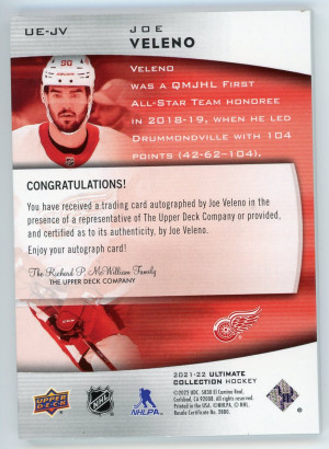 2021-22 Ultimate #USR-JV Joe Veleno Signatures Rookie Autograph