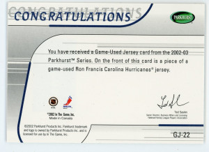 2002-03 Parkhurst #GJ22 Ron Francis Game Jersey 1 of 90