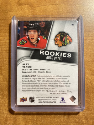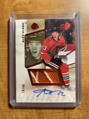 Alex Vlasic 2022-23 UD SPX Ruby Rookie Logo Patch Auto /49 Blackhawks