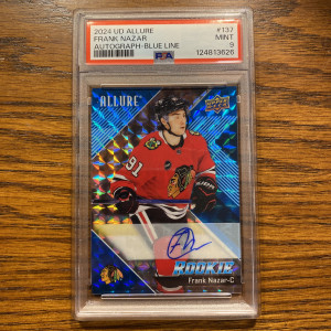 Frank Nazar 2024-25 UD Allure Blue Line Mosaic Rookie Auto /35 PSA 9 Blackhawks