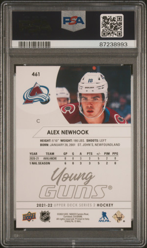 2021-22 Upper Deck Young Guns Alex Newhook #461 RC PSA 9 Colorado Avalanche