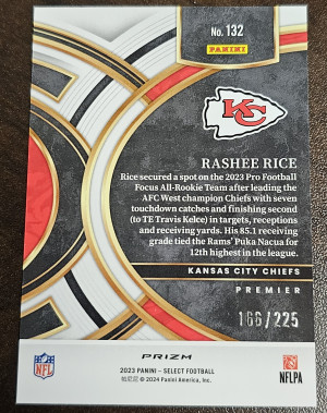 Rashee Rice 2023 Panini Select #132 Tri Color Prizm Rookie RC Premier 151/225