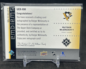 Rutger McGroarty 2024-25 Upper Deck Ultimate Collection Emblems Rookie Auto