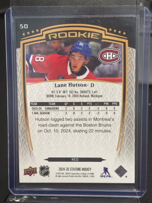 2024-25 Lane Hutson Stature Red Color Match Rookie /249