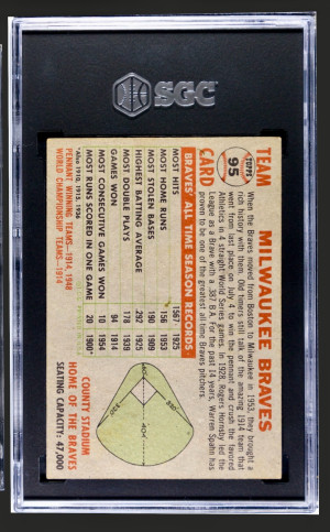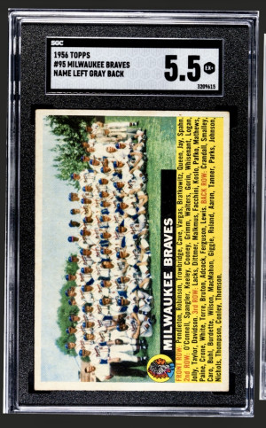 1956 Topps #95 Milwaukee Braves (Hank Aaron) Rare Name Left/Gray Back Variation SGC 5.5 Stunner