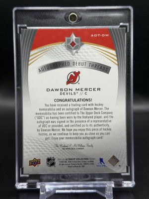 2021-22 Ultimate Dawson Mercer Autographed Debut Threads Rookie Patch Auto /49