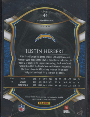 2020 Panini Select Football Justin Herbert #44 Maroon Die Cut RC