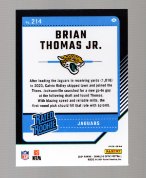 Brian Thomas Jr. 2024 Optic #214 Blue Hyper