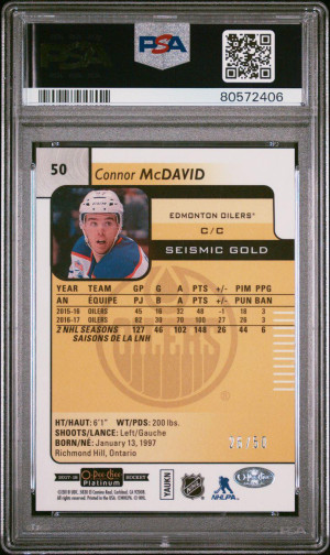 2017 OPC Platinum Connor McDavid Seismic Gold /50 PSA 9