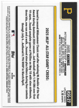 2025 Topps Update Series Paul Skenes #ASG-27 Rainbow Foil - Pittsburgh Pirates