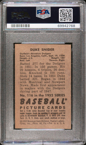 1952 Bowman Duke Snider #116 PSA 4
