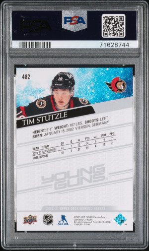 2020 Upper Deck 482 Tim Stutzle Young Guns PSA 10 Gem Mint