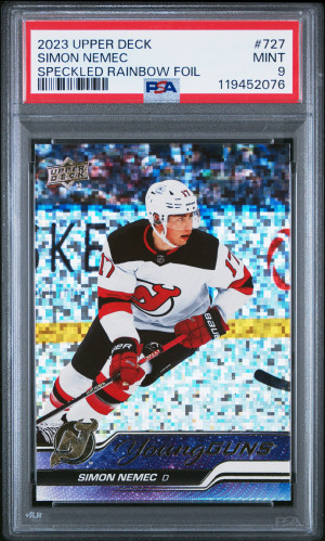 2023-24 Upper Deck Extended Series Speckled Rainbow Foil YG #727 Simon Nemec PSA 9