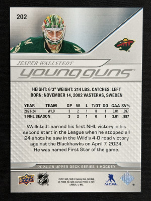 2024-25 Upper Deck Series One YG #202 Jesper Wallstedt