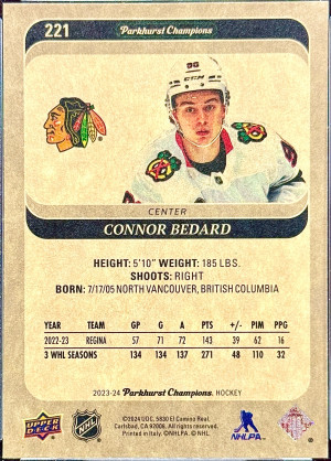 Connor Bedard 2023-24 Parkhurst Champions Rookie SP RC #221