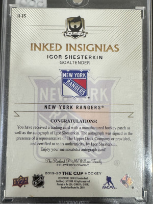 2019-20 UD The Cup Igor Shesterkin Inked Insignias Rookie Auto RPA
