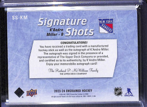 2023-24 Upper Deck Engrained Hockey K'Andre Miller #SS-KM Signature Shots 75/99