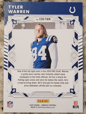 Tyler Warren RC - 2025 Donruss The Elite Series Rookies Insert #ESR-TWN - Colts