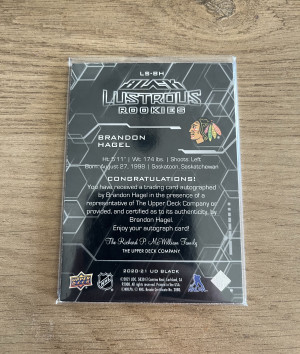 2020-21 UD Black Lustrous Rookies Auto /299 Brandon Hagel