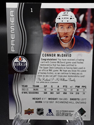 2023-24 Upper Deck Premier Jersey Connor McDavid #1 Oilers