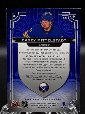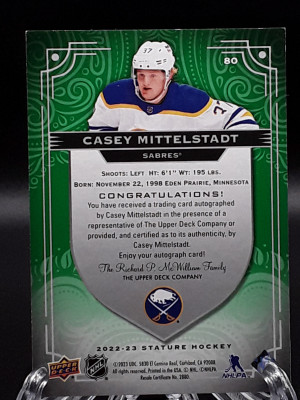 2022-23 Upper Deck Stature Casey Mittelstadt Green Auto /10