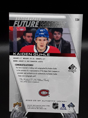 2022-23 SP Authentic Future Watch Auto Kaiden Guhle Rookie /999 Canadiens