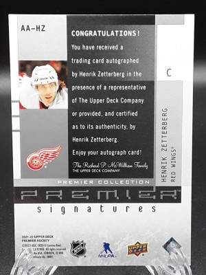 2021-22 Upper Deck Premier Signatures Henrik Zetterberg Auto /35 Red Wings