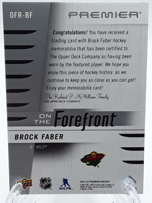 2023-24 UD Premier Brock Faber On The Forefront Patch /75 Wild