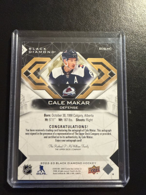 2022-23 Black Diamond Auto Cale Makar SP /10