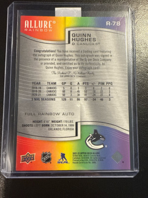 2021-22 UD Allure Rainbow Auto Quinn Hughes