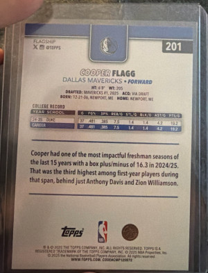 2025 Topps RC Cooper Flagg Sand Glitter Parallel