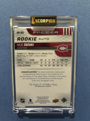 2019-20 Nick Suzuki Premier Rookie Auto