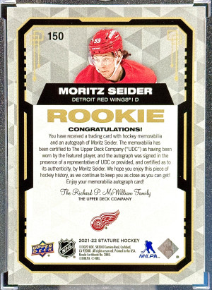 Moritz Seider 2021-22 Stature Portrait Rookie Patch Auto 07/15