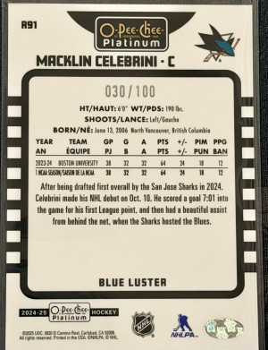 24-25 OPC Platinum Macklin Celebrini Blue Luster /100
