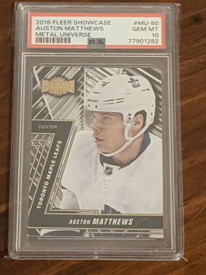 2016 Fleer Showcase Metal Universe Auston Matthews Rookie MU50 PSA 10