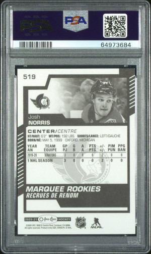 2020 O-Pee-Chee Josh Norris #519 Black & White PSA 10
