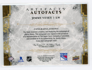 2019-20 Artifacts #A-JV Jimmy Vesey Autofacts Autograph