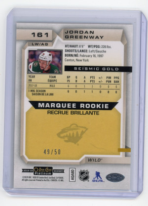 2018-19 O-Pee-Chee Platinum #161 Jordan Greenway Rookie Seismic Gold 49/50