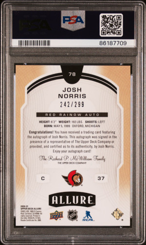 2020 Upper Deck Allure Josh Norris Red Rainbow-Autograph