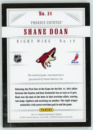 2012-13 Luxury Suite #31 Shane Doan Game Used Stick