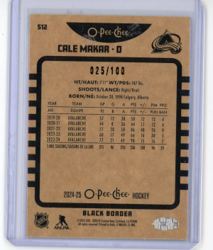 2024-25 O-Pee-Chee #512 Cale Makar Retro Black 25/100